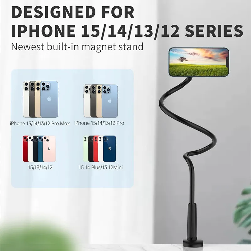Welcome to Tech Wise Goods, where we offer ultimate viewing flexibility with our premium Cellphone bracket. This advanced Magnetic phone holder is specifically engineered For MagSafe compatibility, providing a powerful, instant snap-on connection for your device. The Macsafe cradle design features a heavy-duty Gooseneck arm that is both Long and incredibly flexible, allowing you to position your screen at the perfect angle. Whether you need a reliable Desk mobile support for video calls or a Bedside mount for late-night streaming, this Lazy bracket is the perfect hands-free solution. The Adjustable clamp base attaches securely to headboards, desks, or nightstands without leaving marks or scratches. Its high-strength internal core ensures your phone stays exactly where you put it without sagging over time. The 360-degree rotating magnetic head allows for seamless switching between portrait and landscape modes with a single hand. Crafted from professional-grade materials, this stand is built to support the weight of the largest Pro Max models with ease. The minimalist aesthetic blends perfectly with any modern home or office decor. Choose this versatile magnetic gooseneck holder to experience a more comfortable and ergonomic way to interact with your smartphone.